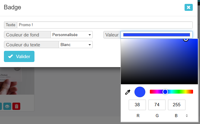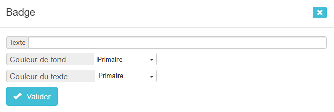 En cliquant dessus, une fenêtre s’ouvre pour vous permettre de paramétrer le badge selon vos besoins.