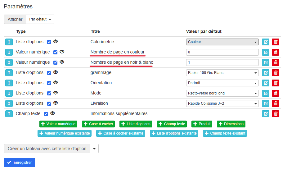 Vous devrez donc créer deux valeurs numériques sur la fiche produit affiliée au Preflight, afin de pouvoir les indiquer comme variables.