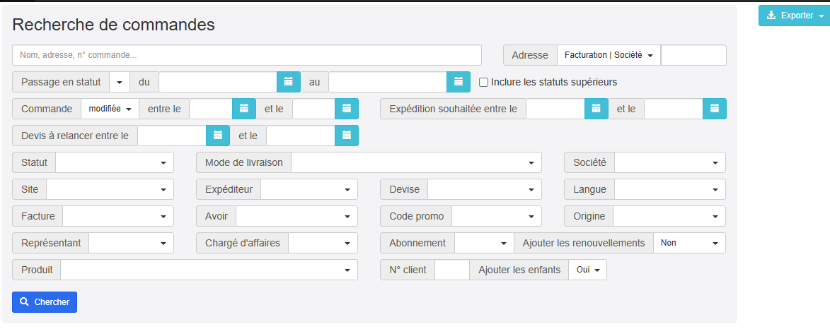 Dans le menu commandes, seules les commandes correspondant à vos critères s’afficheront.