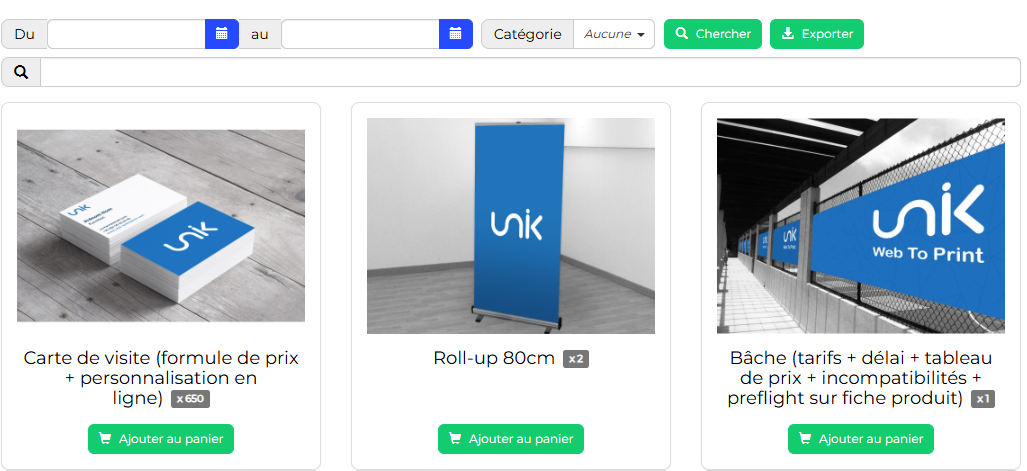 - Filtre par date et par catégorie : Vous pouvez filtrer vos commandes par période et par type de produit pour retrouver plus facilement ce que vous cherchez