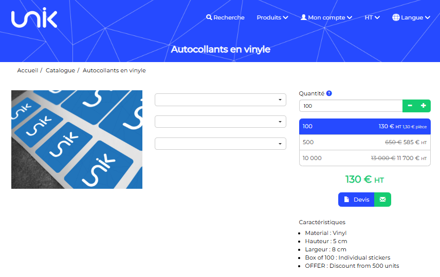 L’intérêt de cette fonctionnalité est que le client conserve malgré tout la possibilité d’envoyer des fichiers et d’utiliser l’outil de personnalisation en ligne depuis les fiches produits, faisant ainsi d’Unik un véritable outil dédié à la gestion de fichiers.
