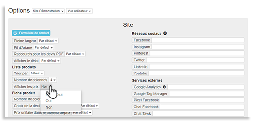 Dans le même menu, vous pouvez également choisir d'afficher le prix sur la liste des produits, en fonction de chaque site.