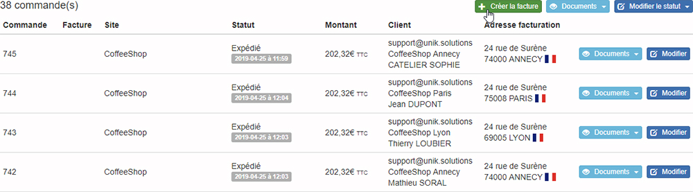 La solution Unik comporte un module de facturation qui génère automatiquement une facture lorsqu'une commande est expédiée.